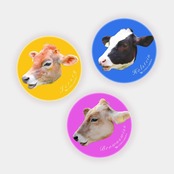 ホルスタイン・ジャージー・ブラウンスイスの笑顔が可愛い缶バッジ3個セットです。